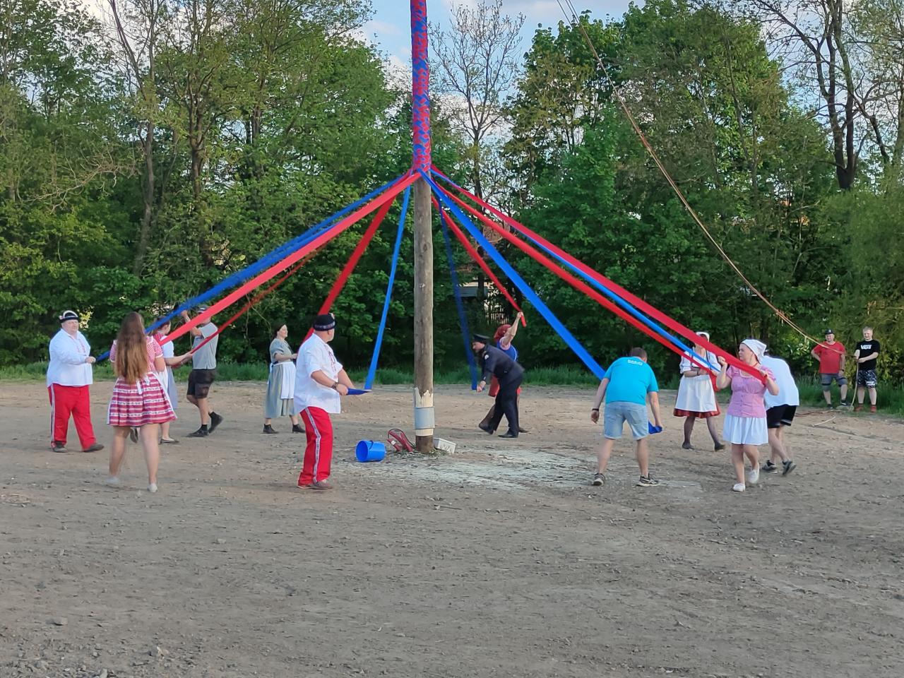 Stavění májky tentokrát se stuhami
